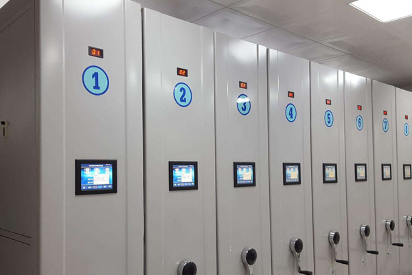 電動密集柜主要由軌道、底座、立柱(板式)、擱板、掛板、側(cè)靠板、背靠板、頂板、防塵板、護板、門板、傳動機構(gòu)、防傾倒、防震、防塵、防鼠、制動、緩沖、目錄卡及傳動裝置、密封裝置組成: